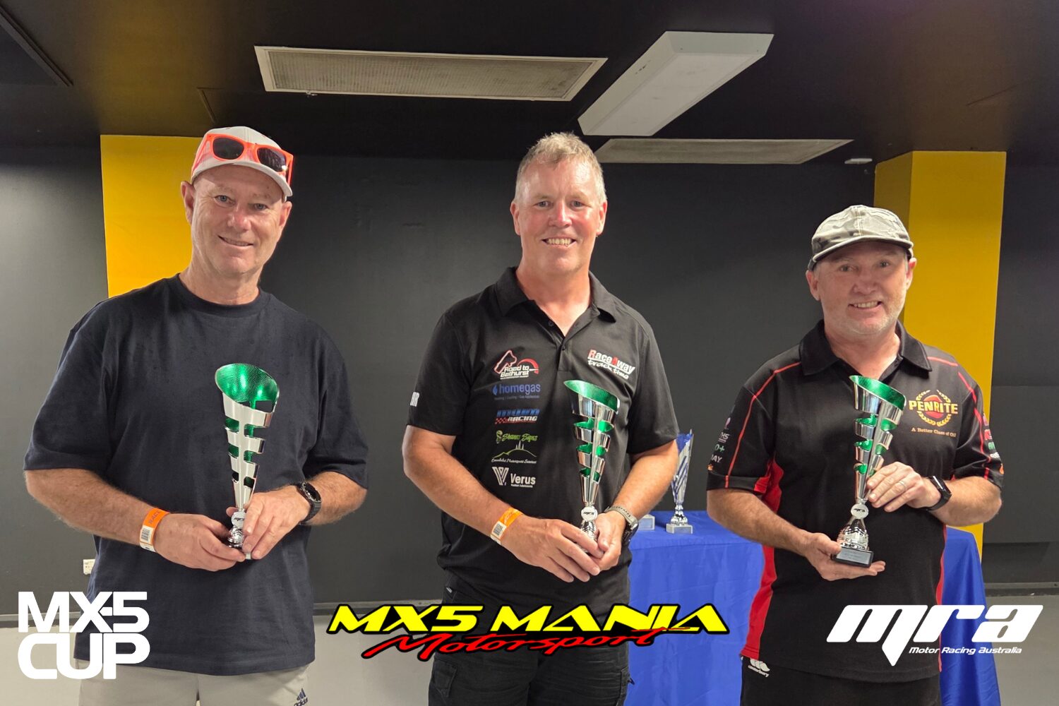 The Round 1 trophy presentation recognised class winners and podium finishers after a physically demanding day for all competitors. With heat and humidity affecting every session, finishing races and maintaining consistency were key factors in the final results. Congratulations to all class winners and podium recipients, and thanks to MX5 Mania, Veyron Finance, Smart Boating, Urban Auto Co, and Tim Herring Towing for their continued support of the championship.