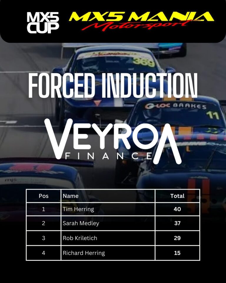 - Forced Induction (Veyron Finance): Tim Herring leads on 40 points, with Sarah Medley close behind on 37