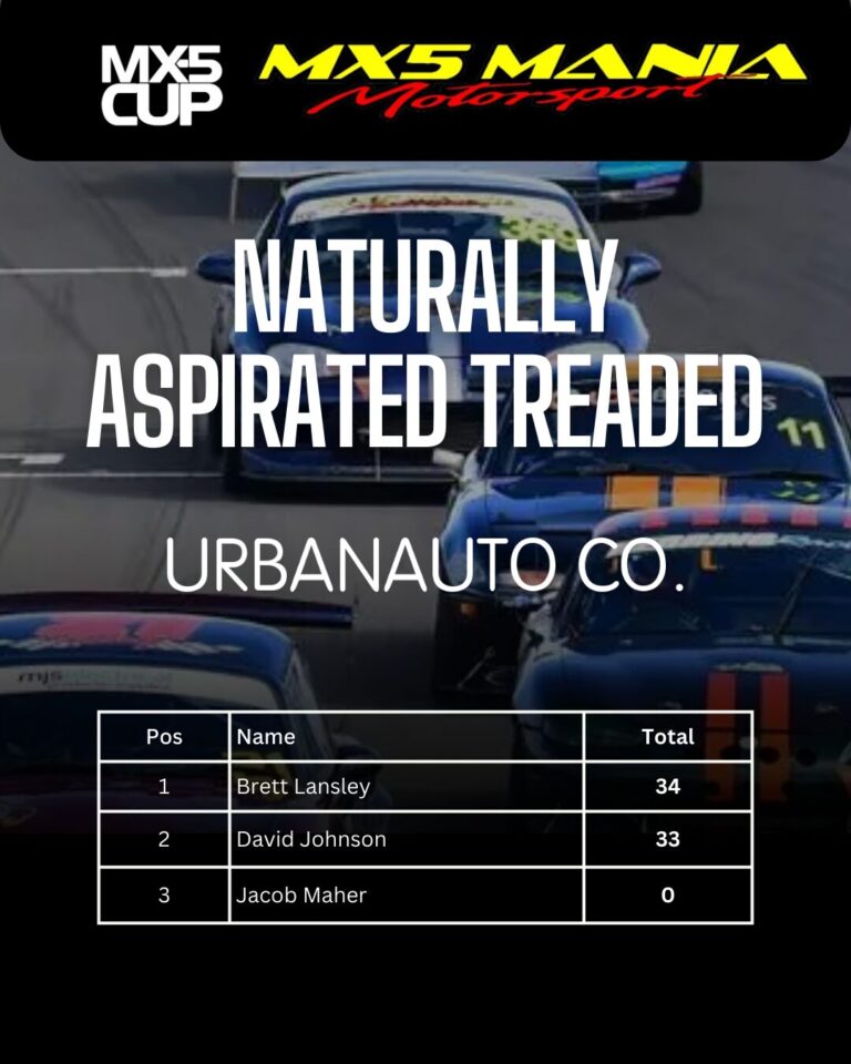 - Naturally Aspirated Treaded (Urban Auto Co): Brett Lansley and David Johnson separated by a single point